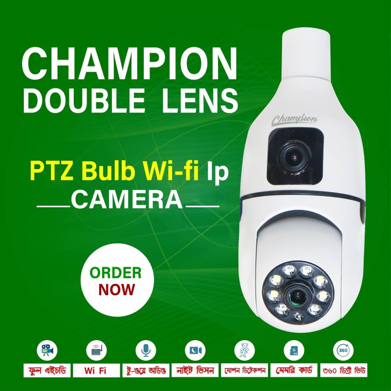 Champion Double Lens PTZ Bulb Wi-Fi IP Camera